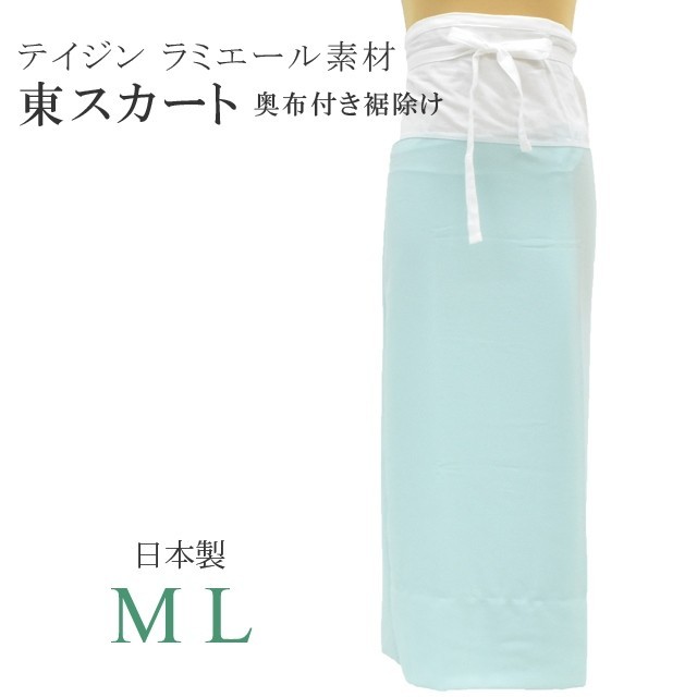 東スカート (奥布付き裾除け) ラミエール ちりめん 裾折り返し仕立て テイジン素材使用 水色 sin6521-bob22