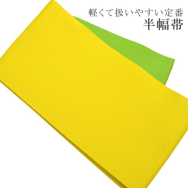 ゆかた帯 浴衣帯 半幅帯 日本製 ポリエステル 洗える 軽くて縛りやすい 定番の浴衣帯です 黄×緑 skc0162-bob03