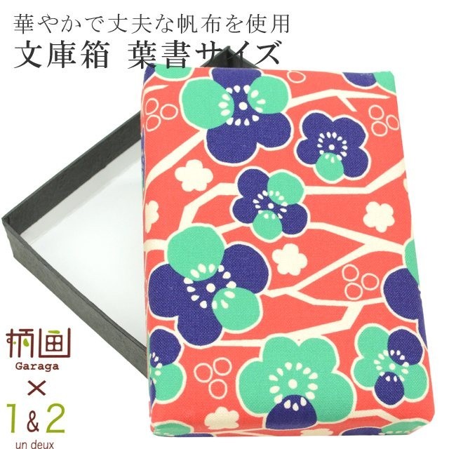 着物 文庫箱 帆布 着物収納箱 日本製 帯留め入れ 中 はがきが入るサイズ 梅 赤 spo7484-kima03