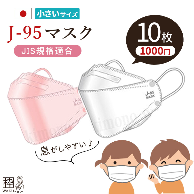 花粉 マスク 不織布 子供 日本製 こども 小さめ 医療用JIS規格取得 J-95s j95s 正規品 国産マスク 小さめサイズ 10枚 個包装 サージカルマスク 黄砂 3D 立体