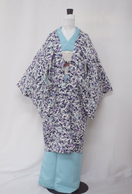洗える長羽織 0942 アイボリー 小花 お仕立て上がり 袷 (レターパック不可)