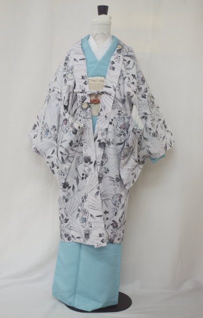 洗える長羽織 0946 白練 花・雪輪 お仕立て上がり 袷 (レターパック不可)