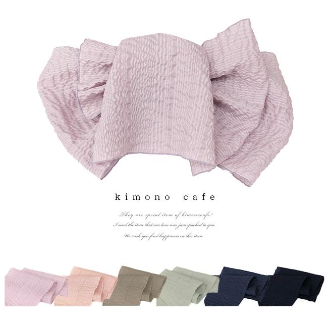 色合いと張り感にこだわった大人の兵児帯です。浴衣や夏着物に最適です。少しスモーキーでくすみ感がある色合いに染め上げ、リップル加工を施すことで、帯に最適な張り感をもたせています。