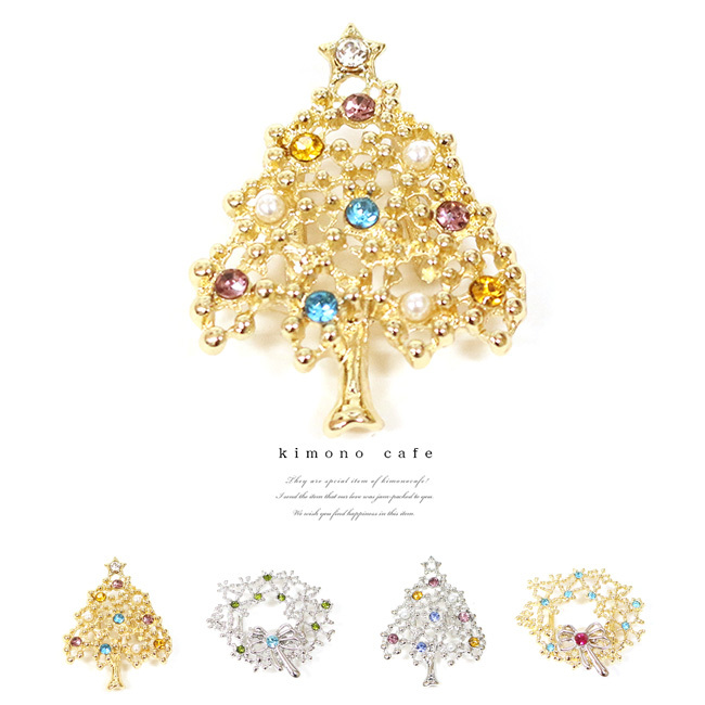 クリスマスをイメージさせる帯留です。ツリーとリースの2種類、お色は金と銀の2色です。