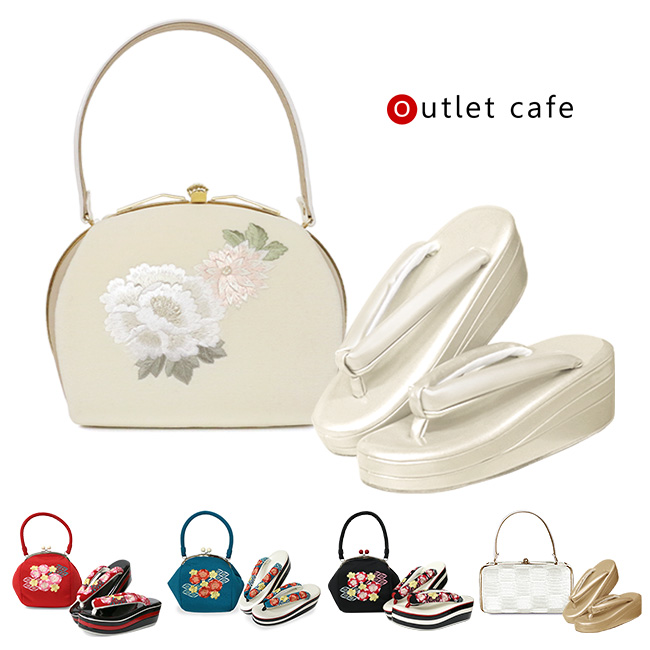 ※※訳あり 振袖用 バッグ 草履 セット ヒール エナメル がま口 レッド ホワイト ゴールド ターコイズ ブラック 成人式 結婚式 卒業式 袴