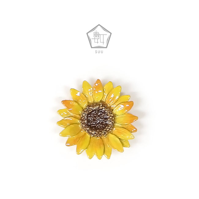 数 SUUのヒマワリの帯留めです。大きく元気にさく向日葵の帯留めです。夏の時期、浴衣などにも似合うと思います。