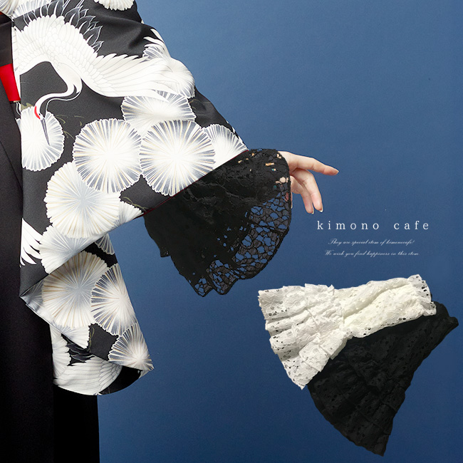 付け袖 レース コスプレ レース袖 着物用 レースの振袖 黒 白