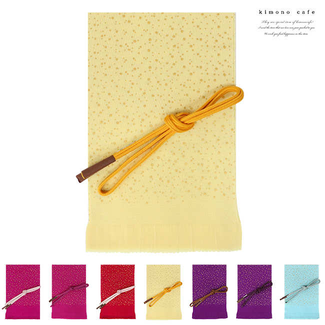 シルクの縮緬生地にあられ模様の金箔を施した帯揚げです。大正ロマン風のお着物に合わせれば、ちょっぴり個性的なコーディネートになりますよ!