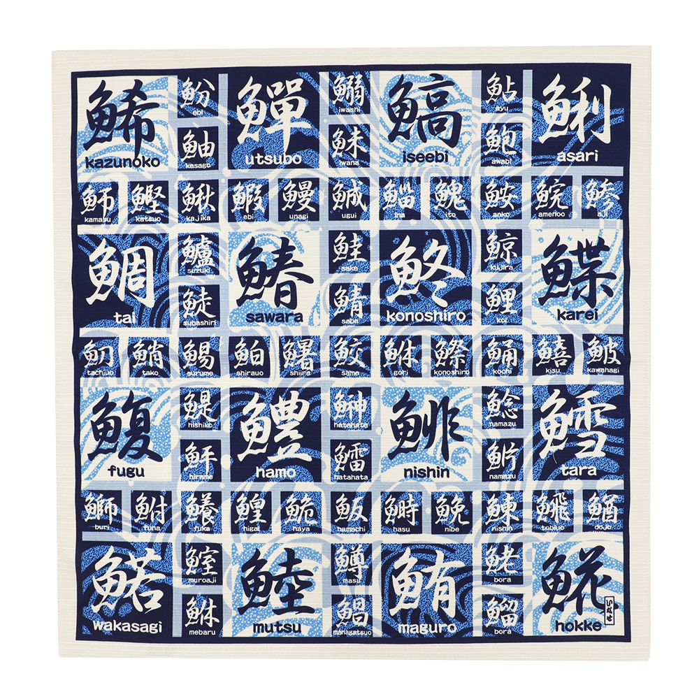 風呂敷 日本製 50cm幅 中巾 魚 サカナ 漢字 魚偏 和柄 いなせ 粋勢 有職 縮小風呂敷 綿100% 粋 モダン 北欧 テーブルクロス インテリア スカーフ リメイク タペストリー ワイン包装 ペットキャリー プレゼント 贈り物 ギフト 包装 包む 布 生地 カバー お洒落 可愛い かっこいい No.26-0007