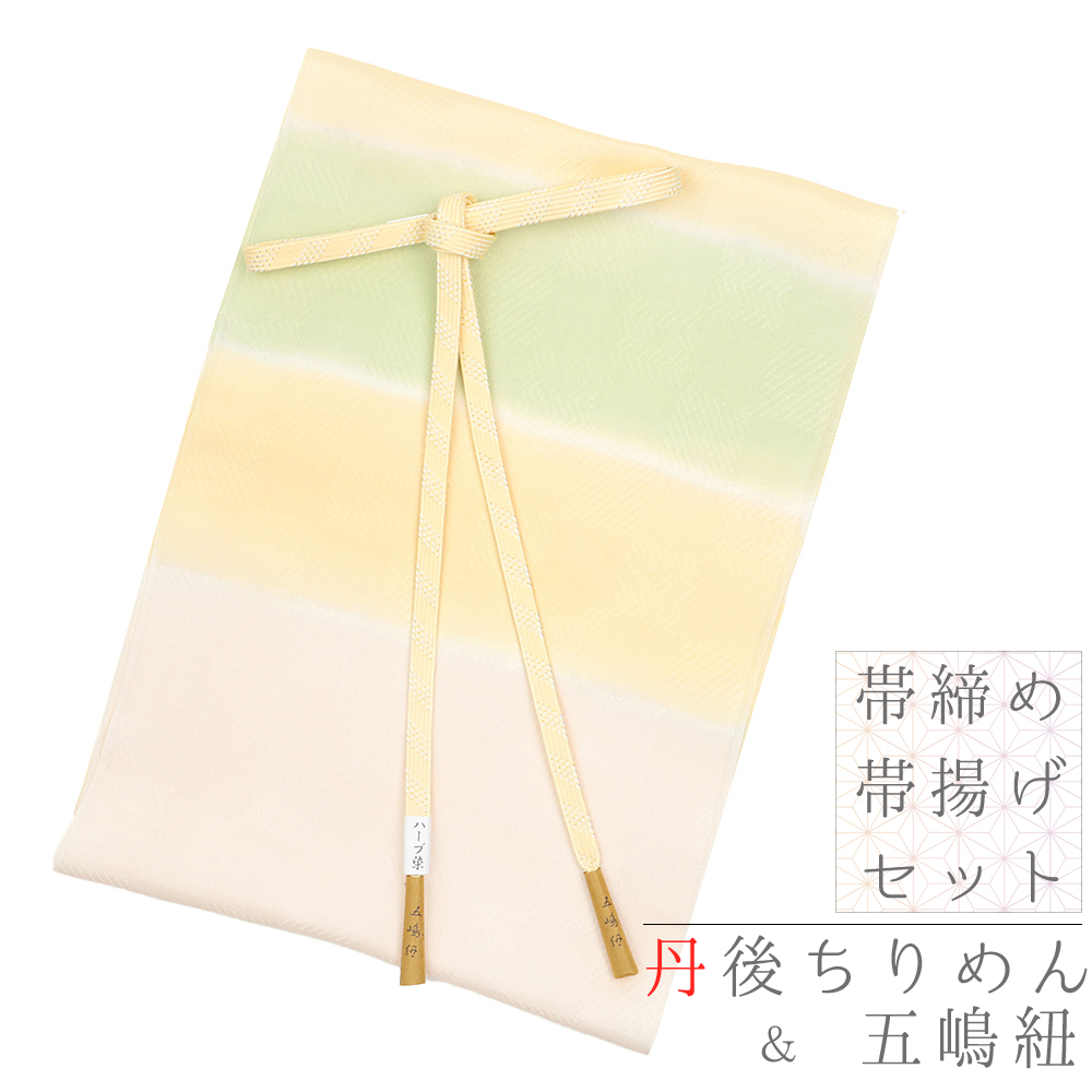 帯揚げ 帯締め セット 正絹 五嶋紐 江戸組紐 丹後ちりめん ハーブ染 礼装 友禅染 金糸 薄黄色 白 薄橙色 薄桃色 ピンク 薄緑色 No.8-2178