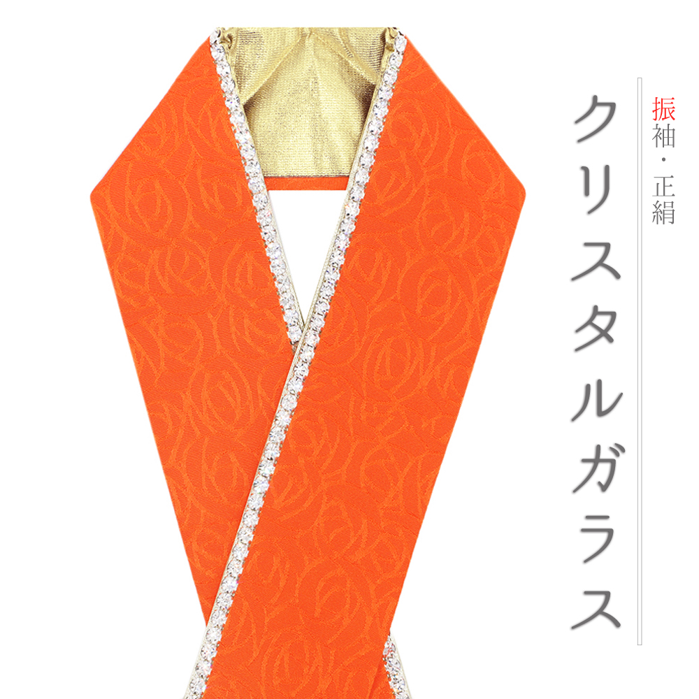 重ね衿 正絹 振袖 成人式 オレンジ 金 薔薇 リバーシブル ラインストーン フォーマル 日本製 お洒落 重ね襟 結婚式 No.8-3181