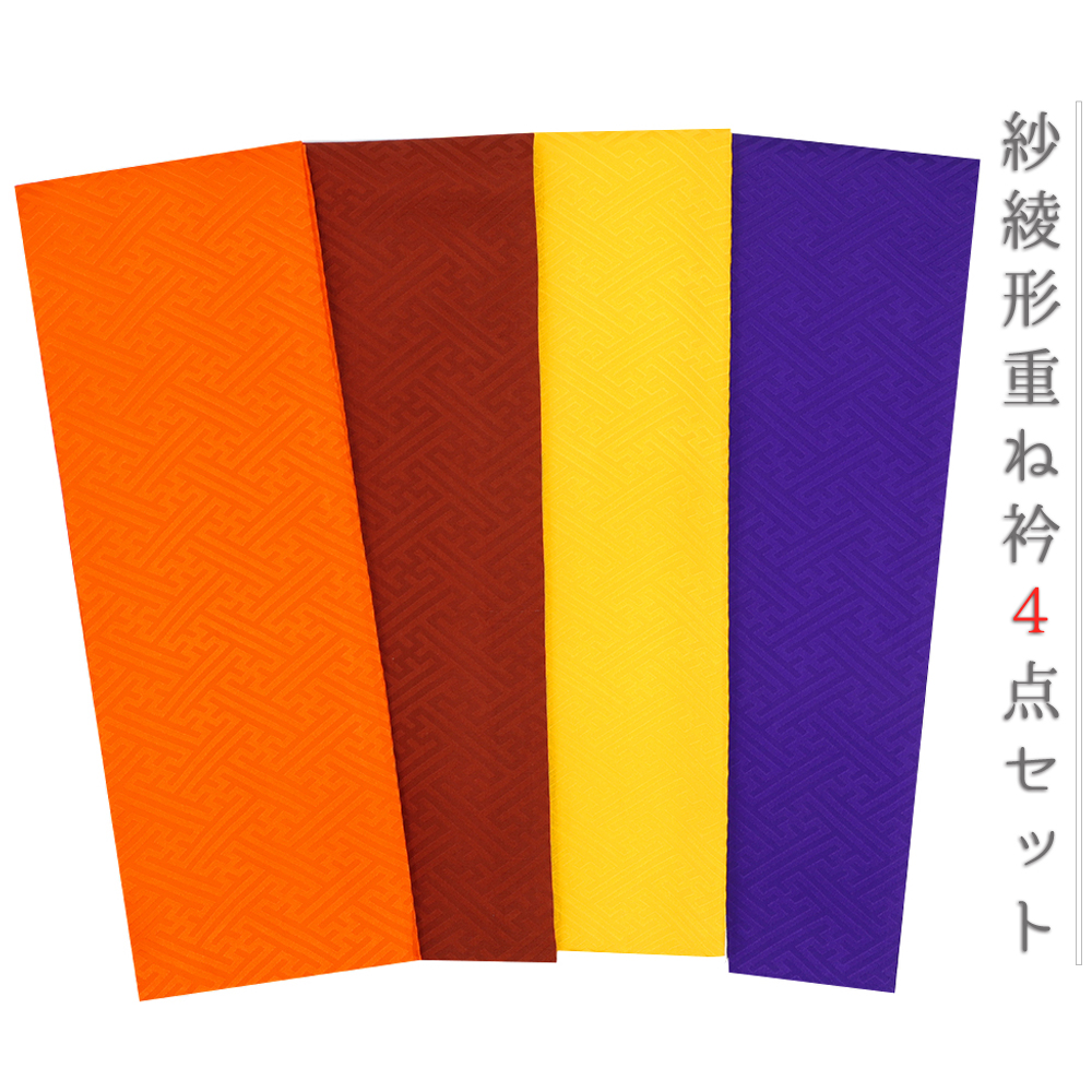重ね衿 正絹 振袖 成人式 4点セット オレンジ 橙色 赤茶 茶色 黄色 紫 紗綾形 フォーマル 日本製 お洒落 重ね襟 訪問着 結婚式 No.8-3200