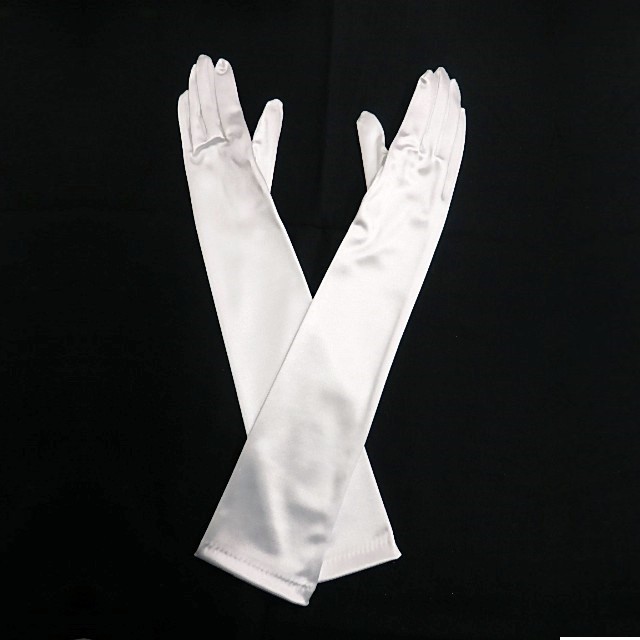 ■ホワイトのロング丈、サテンのシンプルグローブ