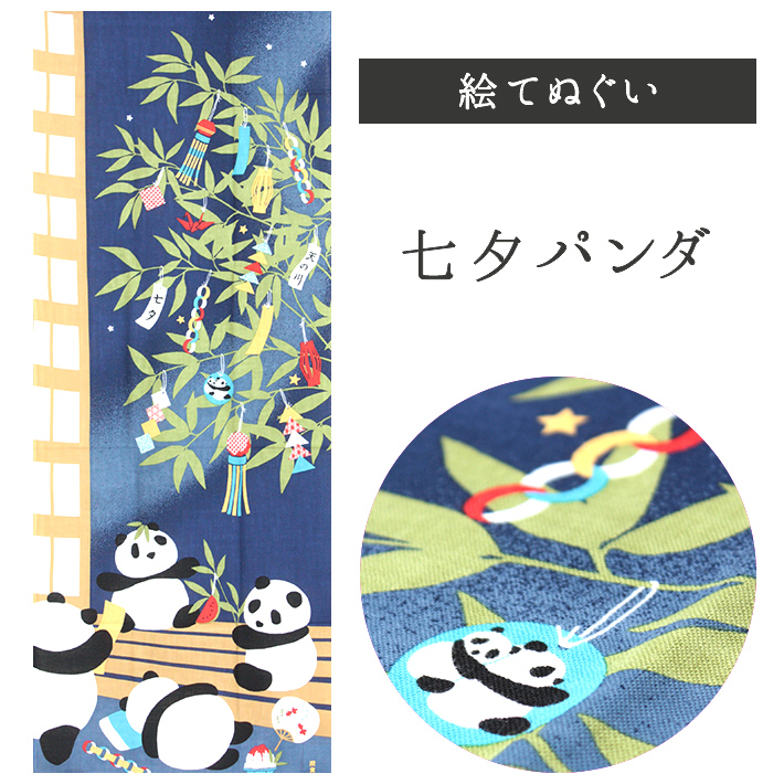 七夕パンダ 濱文様 てぬぐい 絵てぬぐい タペストリー 季節柄 横浜捺染 夏 七夕 7月7日 笹の葉 パンダ カフェ 壁掛 爆買