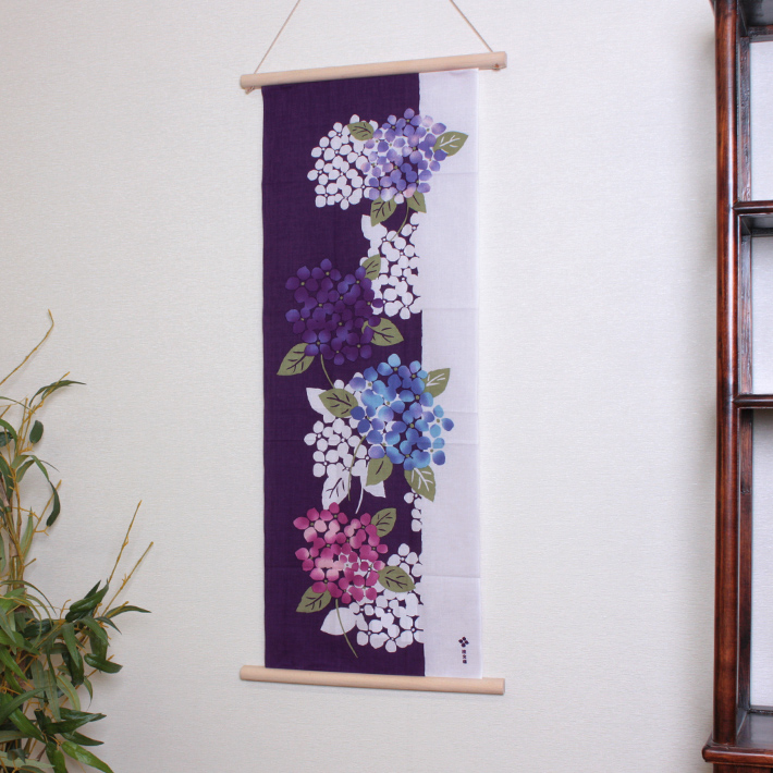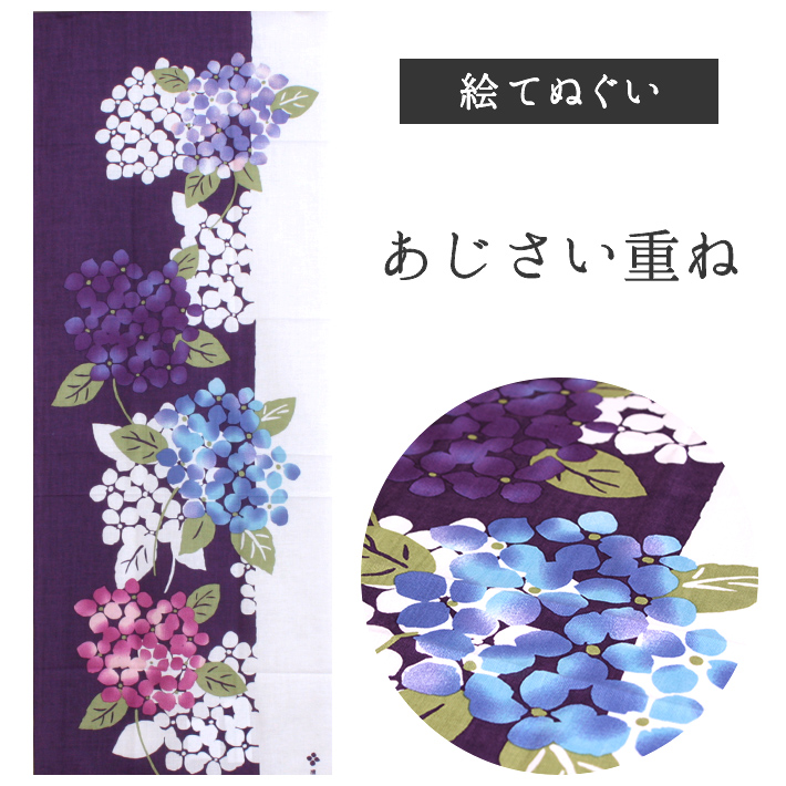 あじさい重ね 濱文様 てぬぐい 絵てぬぐい タペストリー 季節柄 横浜捺染 夏 梅雨 紫陽花 花 壁掛け 綿100% 吸水 爆買