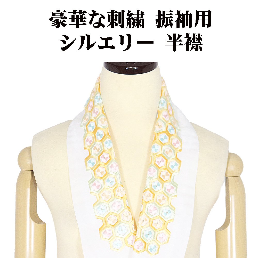 シルエリー Silelly 振袖用 刺繍半襟 ポリエステル 白 ホワイト 刺繍 花亀甲 はんえり ki31246 新品 送料無料
