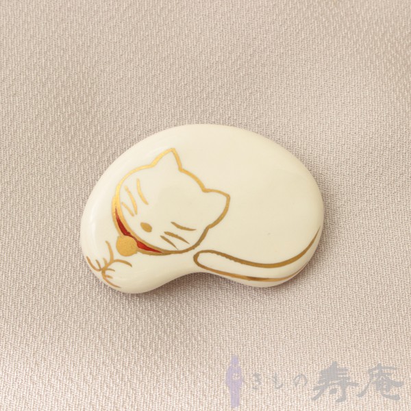 帯留め 猫 白 清水焼 三分紐用 陶器 伝統工芸 三分紐用 ギフト 贈り物 手作り ポイント消化 新品 日本製