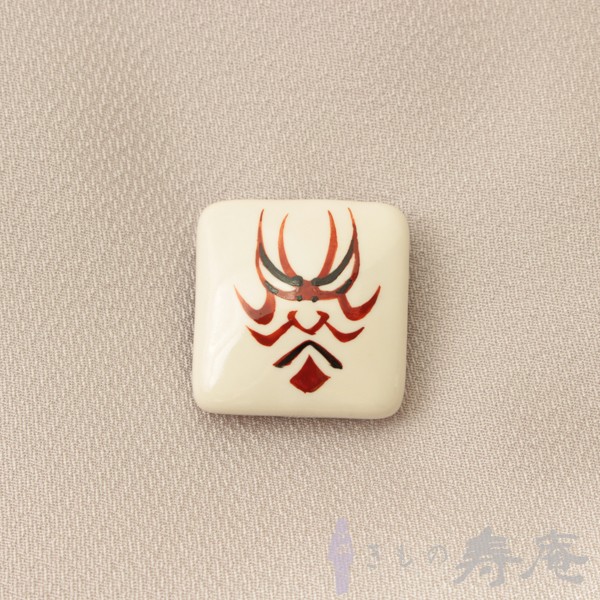 帯留め 歌舞伎 隈取 清水焼 白 陶器 三分紐用 新品