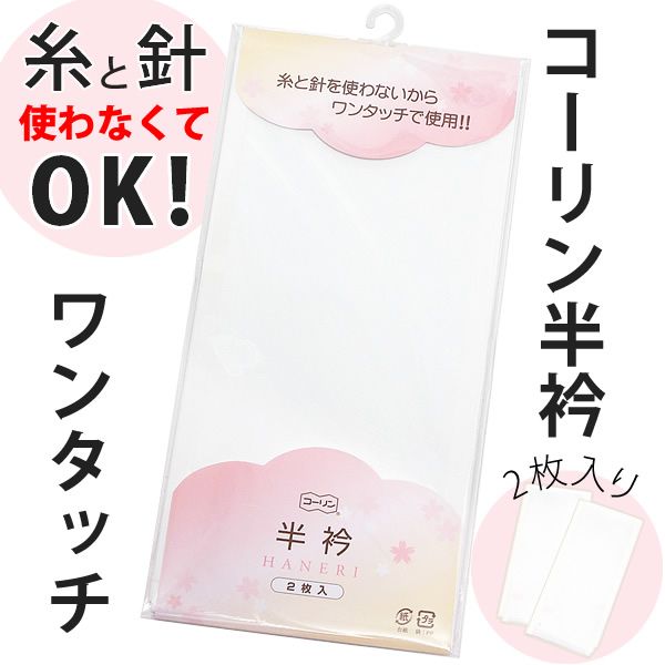 糸と針を使わないで、簡単につけれる半衿です。半衿に付属の粘着テープをつけて、長襦袢に貼りつければいいだけなので、縫う手間なく、簡単です。