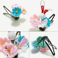 つまみ細工のお花の丸い形、ふんわりとしたうさぎのモチーフが可愛らしい雰囲気で、色使いもお子様らしく可愛らしい華やかさがあります。