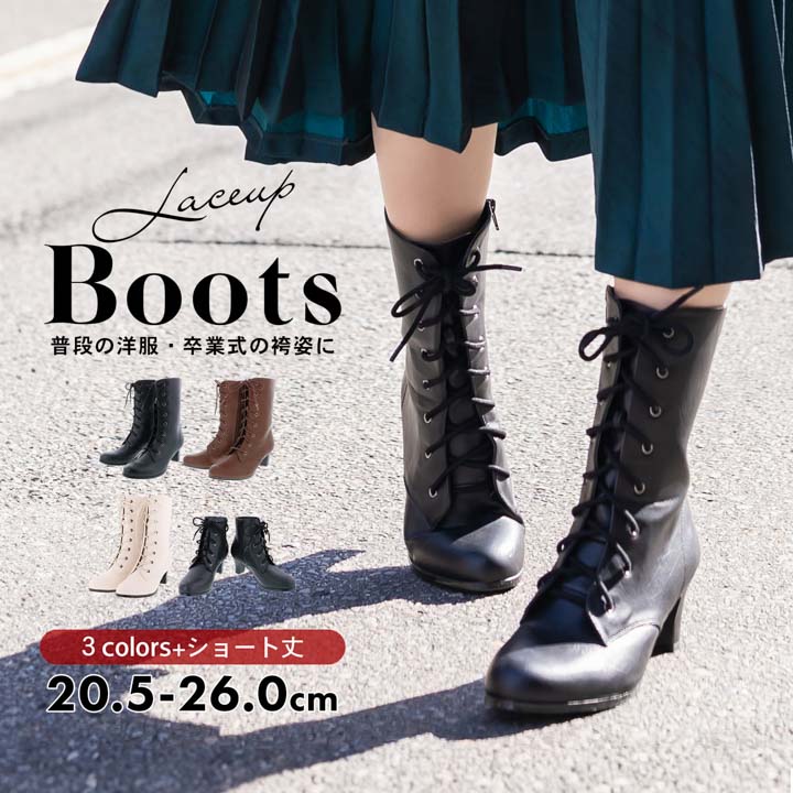 シンプルな編み上げブーツ(レースアップブーツ)です。