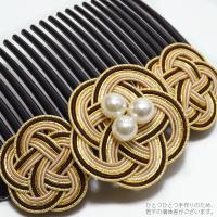 【カラー】濃い焦げ茶、ゴールド、ベージュの色使いの水引きのお花。コームは黒色。