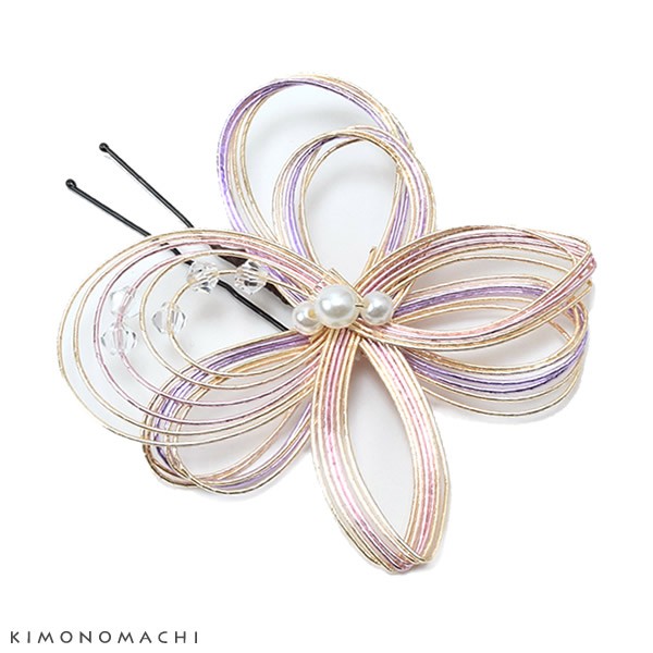 水引きのUピン髪飾りです。他の髪飾りと合わせる付けたしポイント髪飾りに。振袖や二尺袖、袴姿などの華やかなお着物に。洋のお花の髪飾りにプラスして、和のテイストをプラスしたり、和の髪飾りにももちろん合わせていただけます。シンプルに華やかさをプラスしてくれるアイテムです。