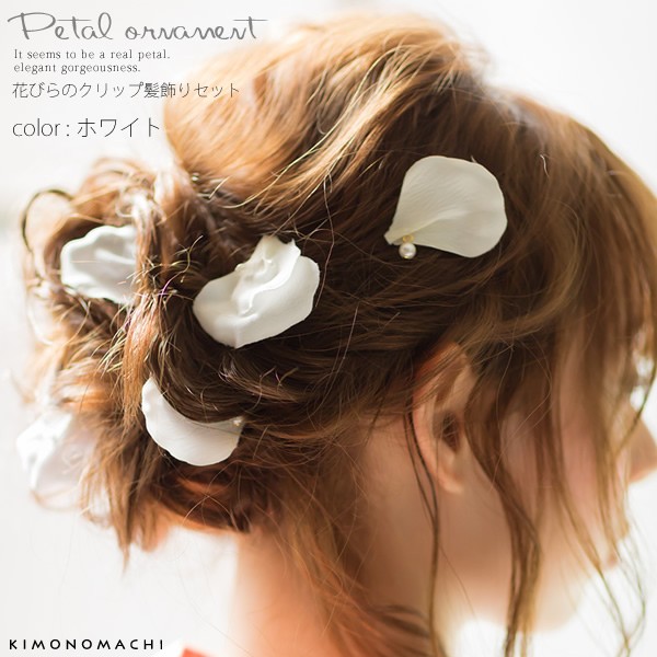 浴衣、着物にはもちろん。洋装のドレスや、ブライダルにも。クリップで簡単につけ外しできるので、アレンジやポイントとして使いやすい髪飾りセットです。