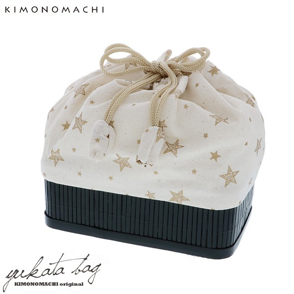 京都きもの町オリジナルの浴衣籠巾着です。二つ折りのお財布、携帯、ハンカチ、簡単なメイク道具は入るぐらいの大きさです。ただ、長財布は入らないのでその点だけどうぞご了承ください。