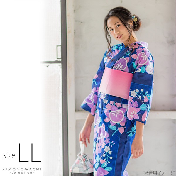 お仕立て上がり女性浴衣単品です。少し身幅が広めで適応身長158〜168cmのLLサイズ浴衣です。夏祭り、盆踊り、花火大会、夏フェスなどの夏のイベントに。平織り生地の浴衣です。