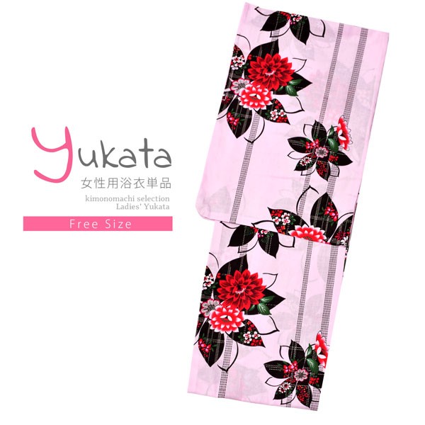 プチプラなのにこだわりデザインでカワイイ!お仕立て上がり女性浴衣単品です。夏祭り、盆踊り、花火大会、夏フェスなどの夏のイベントに。フリーサイズです(適応身長約155〜165cm)。平織り生地の浴衣です。