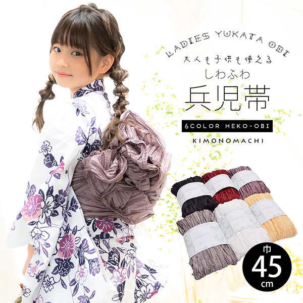 京都きもの町オリジナル、ふわふわくしゅっとしたシワ加工がかわいい兵児帯です。