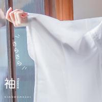 袖、裾廻りはさらりとした肌触りのポリエステル素材を使用、身頃、腰周りは綿素材になっています。