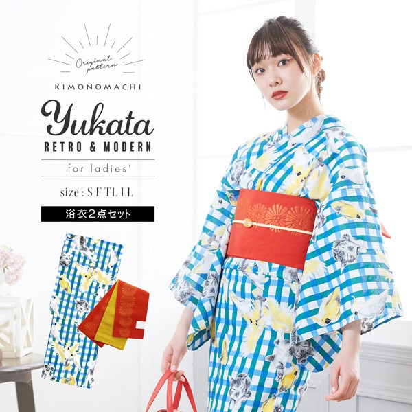 KIMONOMACHIオリジナル!浴衣と帯がセットになったコーディネート済みレディース浴衣セットです。