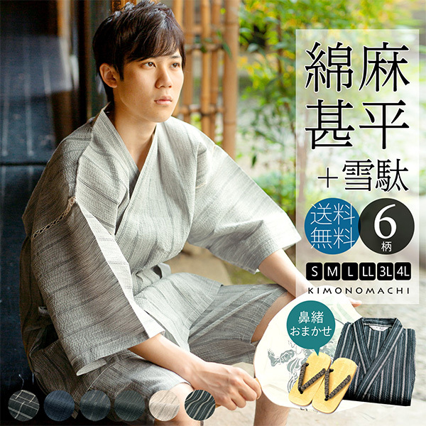 【商品内容】甚平1点(上着とズボンのセット)と雪駄(鼻緒柄おまかせ)の2点セット