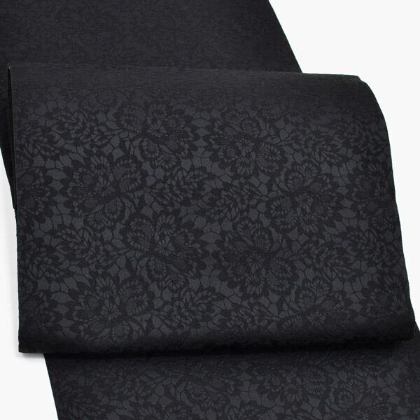 艶のある黒。レース調の花模様が織りで表現されています。黒一色が格好よく、光によって浮かび上がるレース模様は格調高く妖艶な雰囲気を演出します。