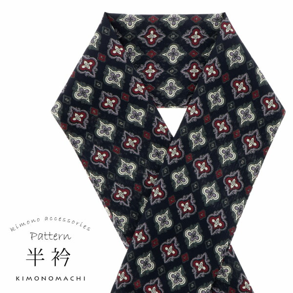 お洒落な柄のポリエステル半衿です。カジュアルな普段の着物に合わせていただけます。衿元から華やかに。