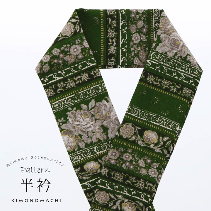 お洒落な柄のポリエステル半衿です。カジュアルな普段の着物に合わせていただけます。衿元から華やかに