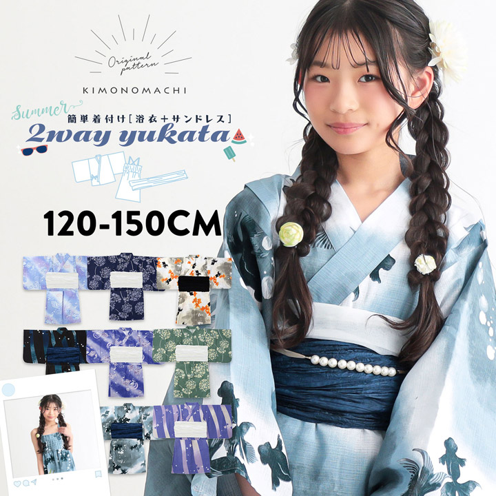 上衣と帯なしでサンドレスだけでもかわいくお召しいただける2way浴衣です。