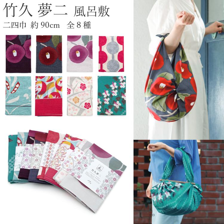 大判 風呂敷 竹久夢二 二四巾 90cm 全8種 紫 小豆色 グレー 赤 レッド 緑 グリーン ふろしき マイバッグ バッグ 椿 つばき 薔薇 バラ 梅 ウメ だんご メール便