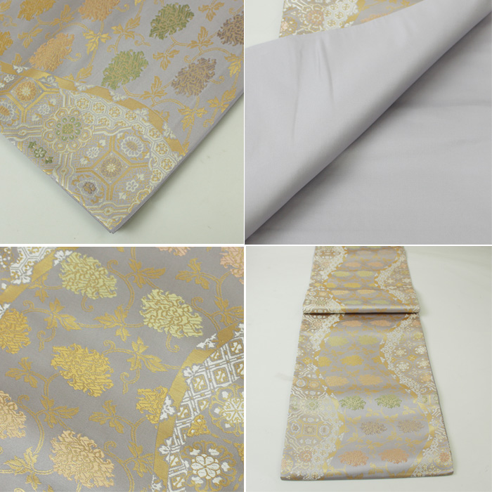 西陣織 袋帯 箔屋清兵衛 新品 礼装 準礼装 訪問着 付け下げ 色無地 お茶会 証紙付き 上品 豪華 金 グレー シルバー 六通 しなやか 更紗 唐草 吉祥文