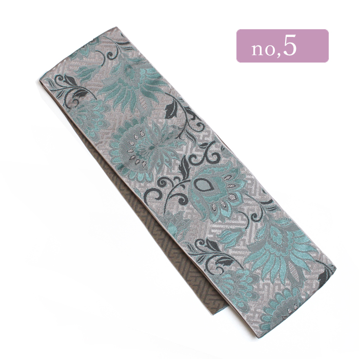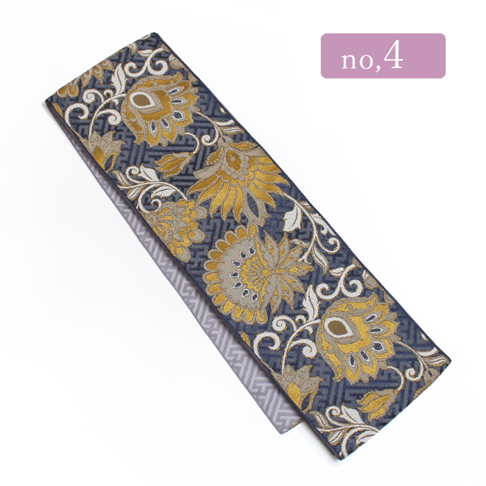 細帯 半幅帯 リバーシブル 4.4m 更紗 紗綾型 日本製 ダスティーカラー ディープ oluza 長尺 おしゃれ ニュアンス 小紋 浴衣 紬 カジュアル 抽象柄 花