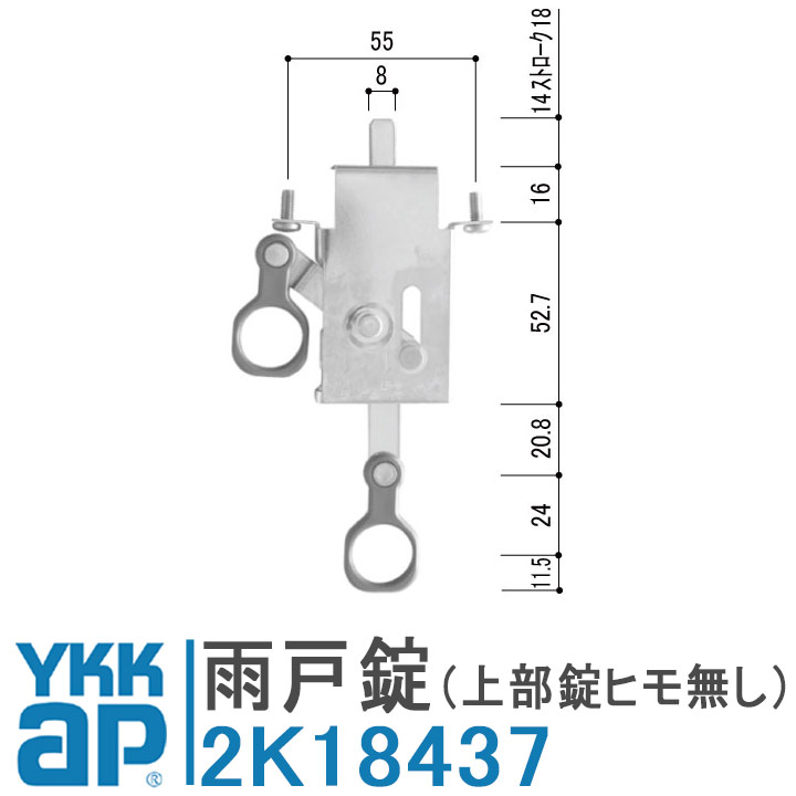 YKK AP 雨戸錠 上部錠 2K18437 YS シルバー YKKap 雨戸 錠 上部錠ヒモ無し YSHHW-2K18437 取付 DIY 簡単 補修 交換 スチール雨戸5SA 5SA-2
