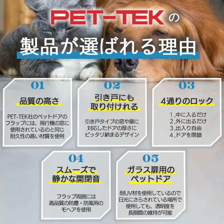 ペットドア 大型猫・小型犬用 G-SDDSL 猫用ドア 犬用 ドア 猫 ドア 犬 ドア ペット用ドア 窓 後付け サッシ ガラスドア用 diy PET-TEK