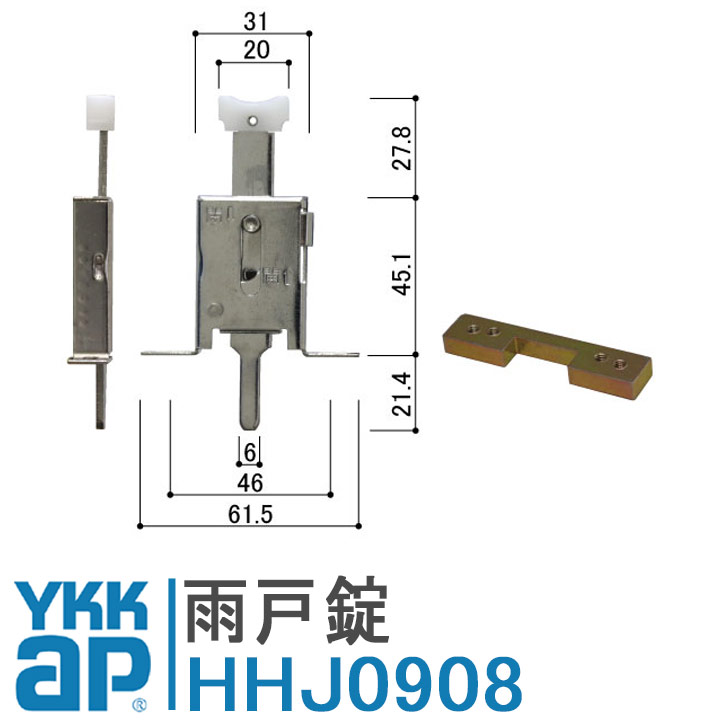 YKK AP 雨戸錠 下部錠 HHJ0908 YS シルバー HHJ-0908 YKKap 雨戸 錠 YSHHW-HHJ-0908 取付 補修 交換 スチールガラリ雨戸3SA 鋼製雨戸7SB(7SA) 鋼製雨戸8SA
