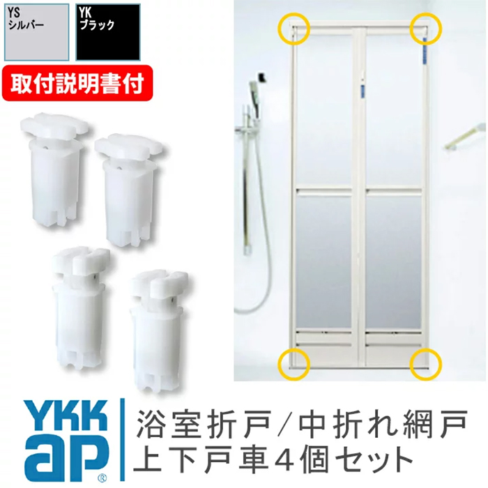 YKKap 浴室ドア 折れ戸 部品 戸車 4個セット HHT0026 HHT0027 <交換要領書付> 上戸車 下戸車 ykk 浴室ドア 交換 部品 diy 浴室 ドア 中折れ戸 サニセーフ