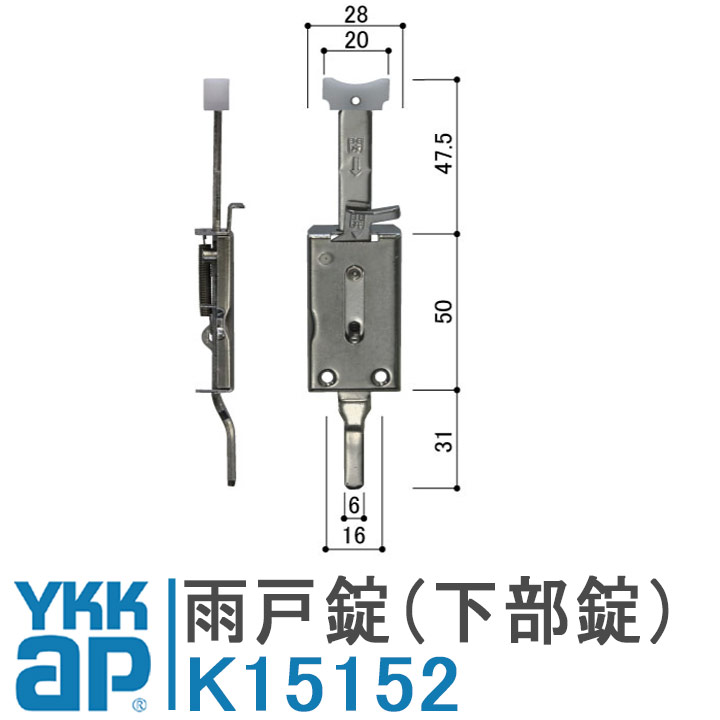 YKK AP 雨戸錠 下部錠 K15152YS シルバー YKKap 雨戸 錠 YSHHW-K15152 取付 DIY 簡単 補修 交換 断熱雨戸7DA