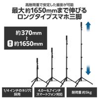 エレコム P-STCFWL02BK 三脚 スマホ・デジカメ対応 スマホホルダー付 最大約165cm ブラック