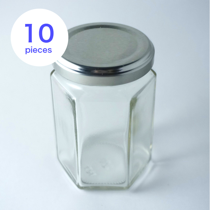 ジャム瓶50 6角150ml フタ付き 10個 保存容器 ガラス製 [日曜祝日 配送休業]
