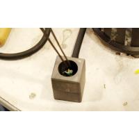 2:溶かした透明ガラスを落とし込みます。(スタンプサッカーの本体は予熱しておく)
